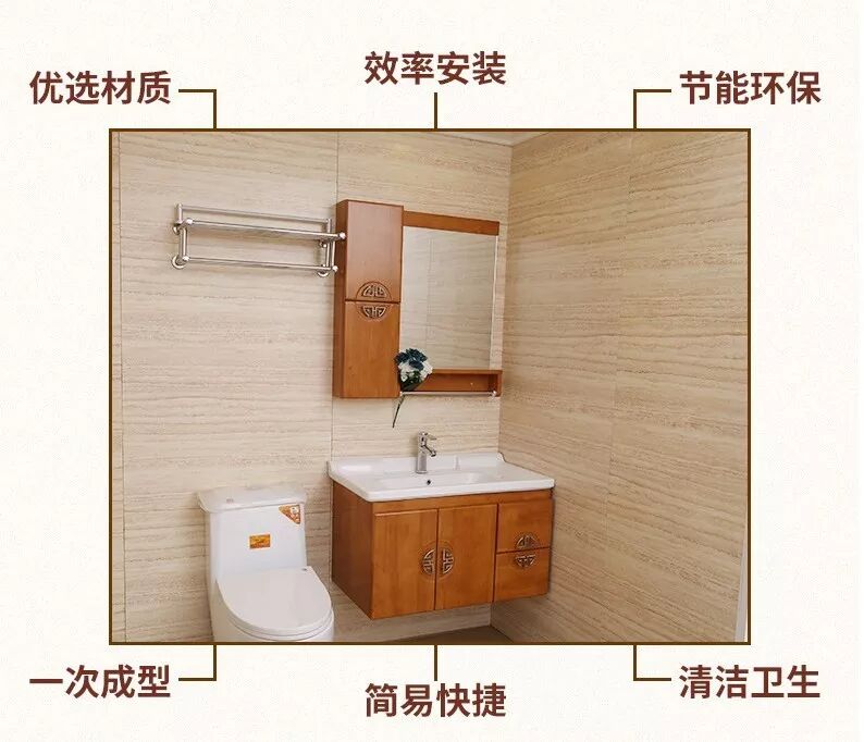集成卫浴预制墙板,整体模压成型,防水性能好;墙板是单层面板背部有少量的支撑肋,墙板整体重量轻;墙板侧面开的阴阳口,可以有效避免水、水汽通过连接处进入墙板外部,浸湿外装修,完全杜绝发霉、渗水、透水现象的发生。